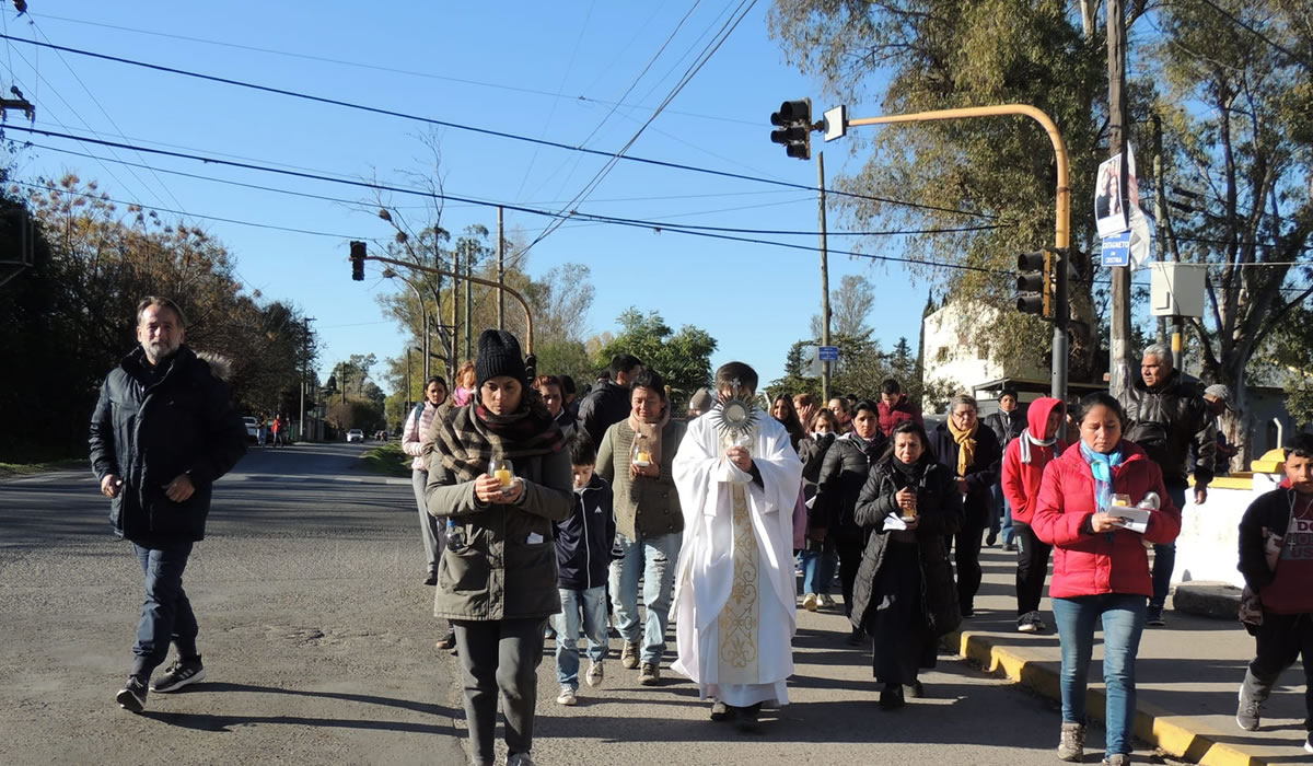 El 11 de junio hicimos la tradicional procesión de Corpus Christi desde la Parroquia Santa Teresita hasta el Centro de Cáritas Ceferino Namuncurá. Trajimos a Jesús
