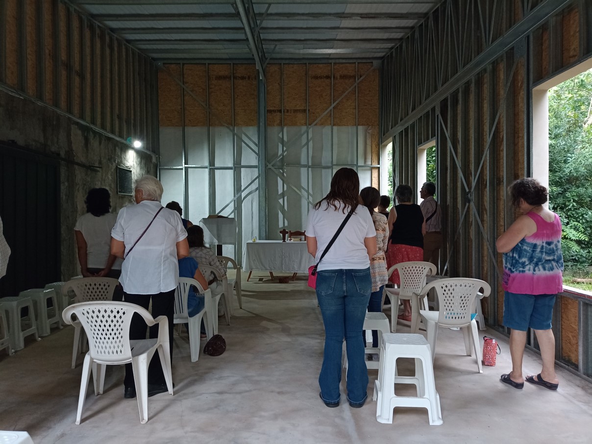 En la Ermita Ludovica estamos construyendo un salón multiuso nuevo. Ya lo estamos usando para celebrar la Misa y dar apoyo escolar. Todavía nos faltan las aberturas y toda la terminanción interior, pero ya nos sirve mucho para poder realizar mejor las distintas actividades. Gracias a todos los que donaron dinero y colaboraron para que se pueda realizar.